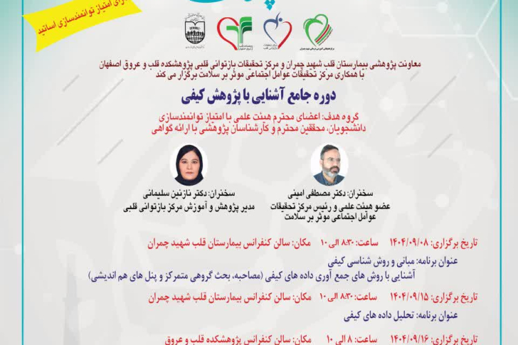 بدینوسیله از جنابعالی/سرکارعالی دعوت میشود در سمینار هماندیشی با محوریت پایاننامههای مشترک در حوزه هوش مصنوعی در سلامت با تمرکز ویژه بر اولویتهای پژوهشی *گروه داخلی و جراحی قلب* حضور بههم رسانید.